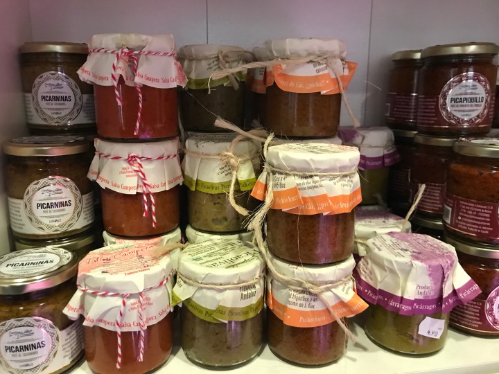 Además de entretenerte viendo la gente que desfila por la calle, puedes disfrutar de las maravillosas latas, tarros y conservas que expone jugando con los colores.