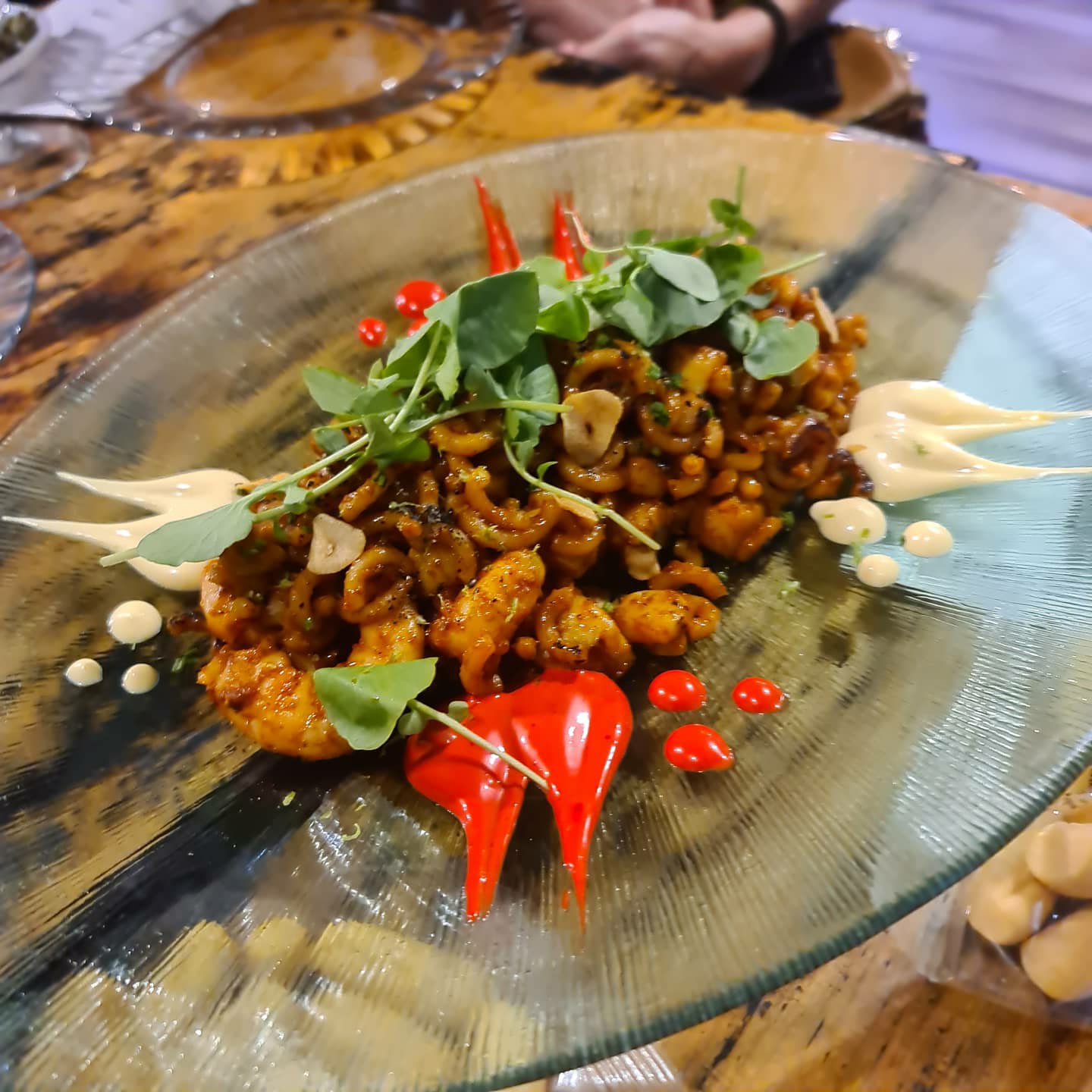 Tomamos una fideuà «quemada» y una mini hamburguesa de retinto muy sabrosa! 🍔