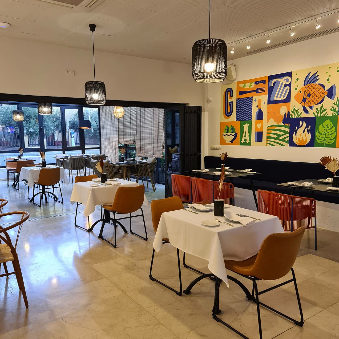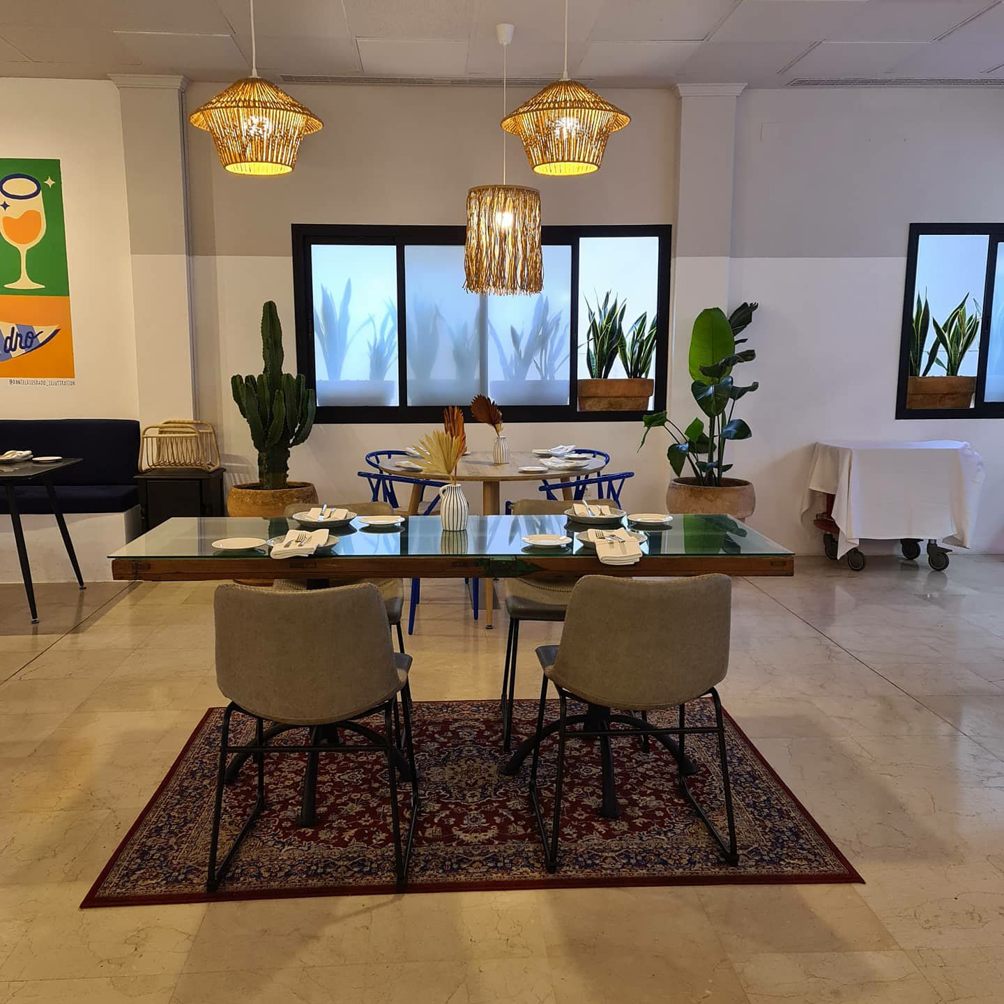 Tienen un salón a modo de terraza muy acogedor, con el techo descubierto. Y no te pierdas los lavabos, donde seguro te entrarán ganas de bailar 🕺