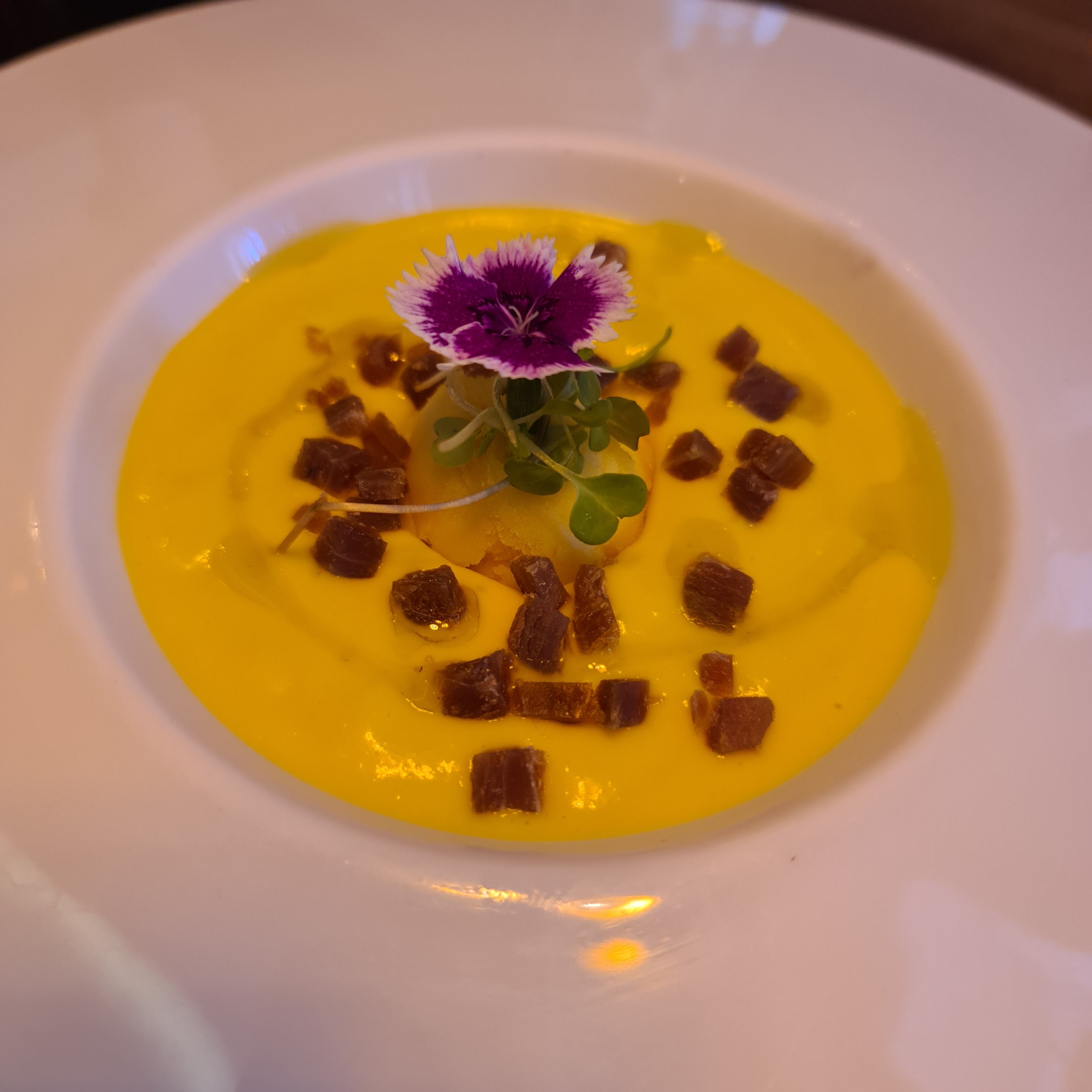 Pero si tengo q elegir un plato salado: no te pierdas la lasaña de centollo 😋 y si quieres un plato fresquito: ajoblanco de mango con helado de.. mango