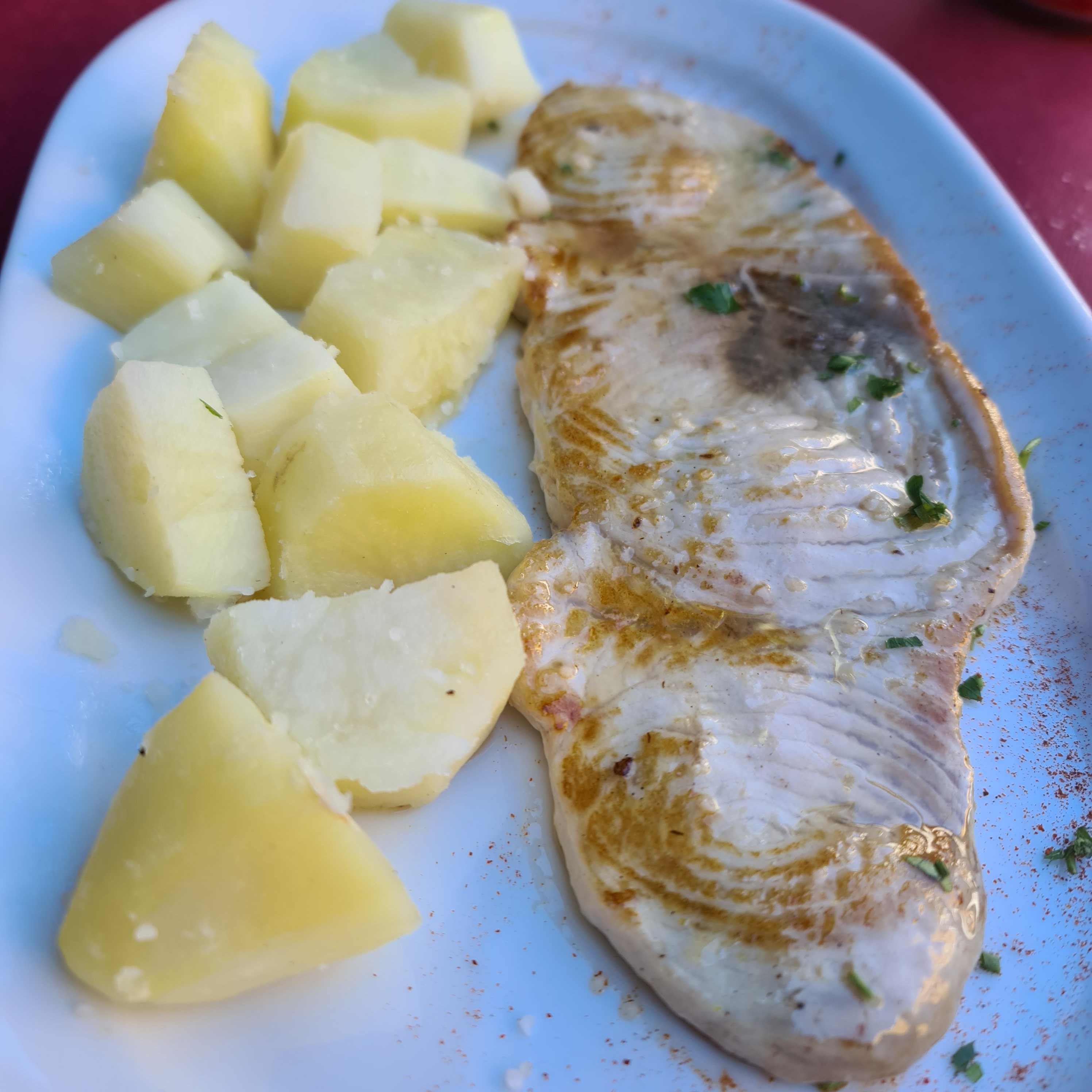 Allí te cuecen el pescado por 4 eur/kg y te lo fríen por 5 eur/kg.. y si llevas medio kilo: 3 euritos!