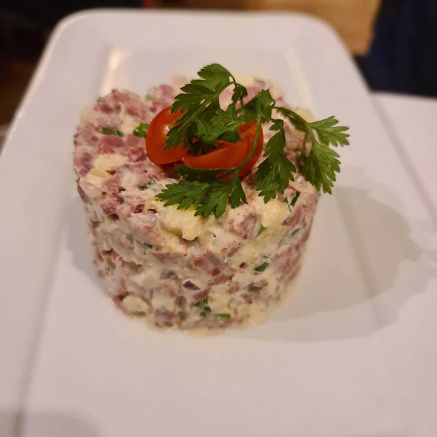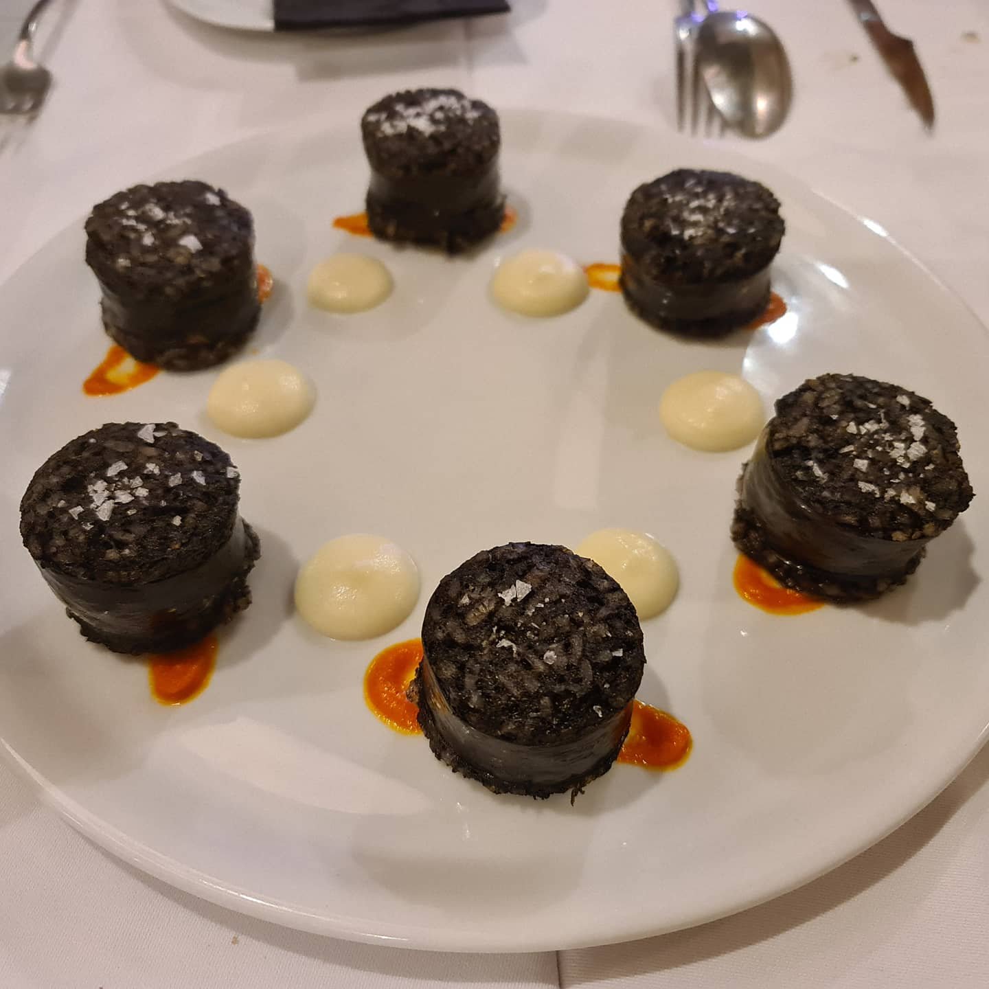 El carpaccio de presa ibérica espectacular👌Además podrás disfrutar de una morcilla de Burgos buenísima 🐽 y si te apetece algo diferente: Un tartar de butifarra y manzana muy original 😎 por supuesto la carne a la brasa fantástica 🐷