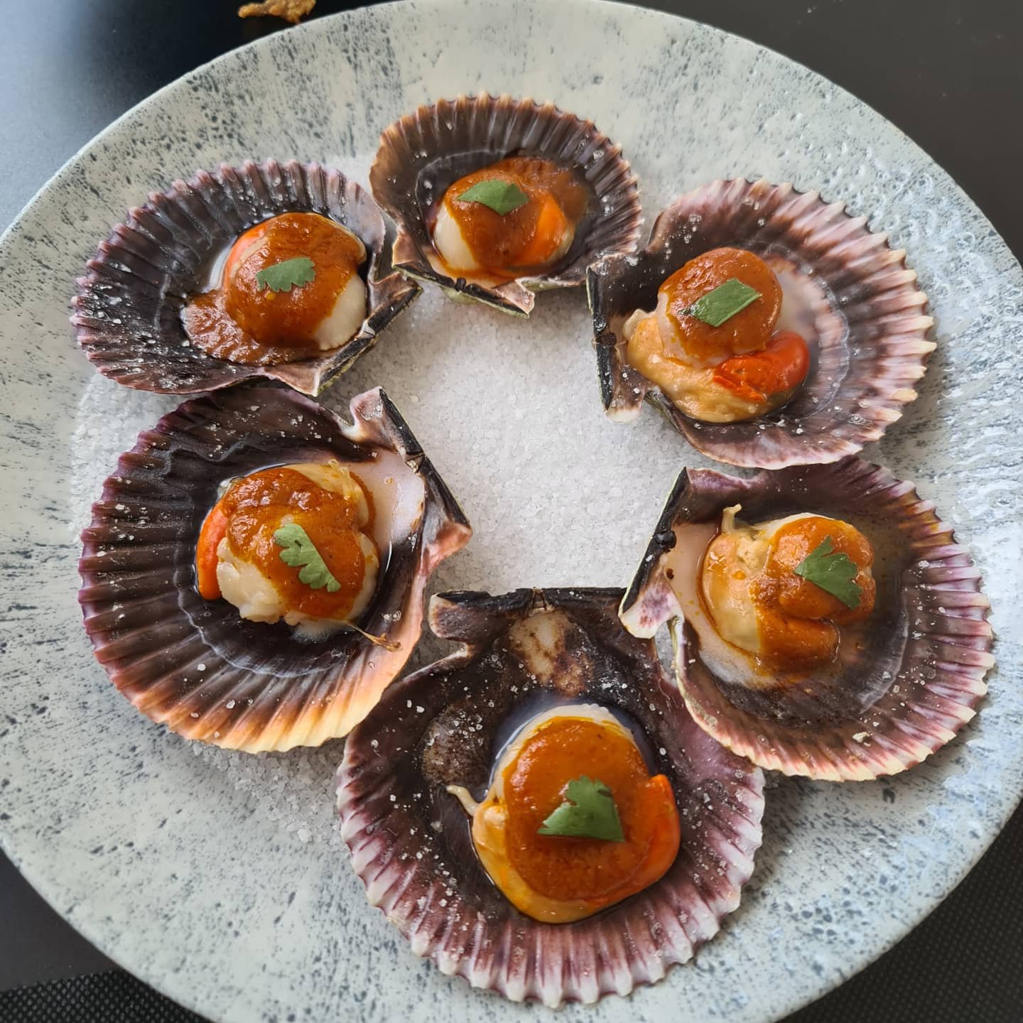 Un tartar de atún, vieiras con curry, ceviche de corvina, y una curiosa «tortilla vaga» de bacoreta en escabeche con mejillones y piparras, acompañaron a esta fantasía hecha realidad ❤