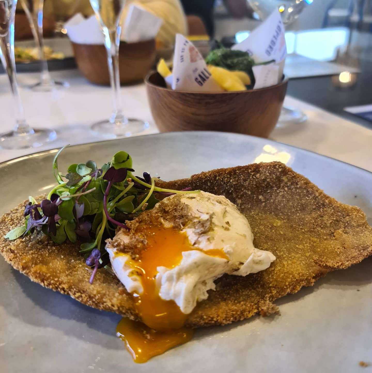 Una ensaladilla de bogavante azul y trufa 🥂 GH Mumm Gran Cordon 😍 un montadito de filete de lubina de @esteroslubimar con una suave salsa tártara (buenísimo el brioche) 🥂 GH Mumm Grand Rosé 😍 y un escalope de ternera de la Janda con trufa y huevo poché 🥂 GH Mumm Milesimé