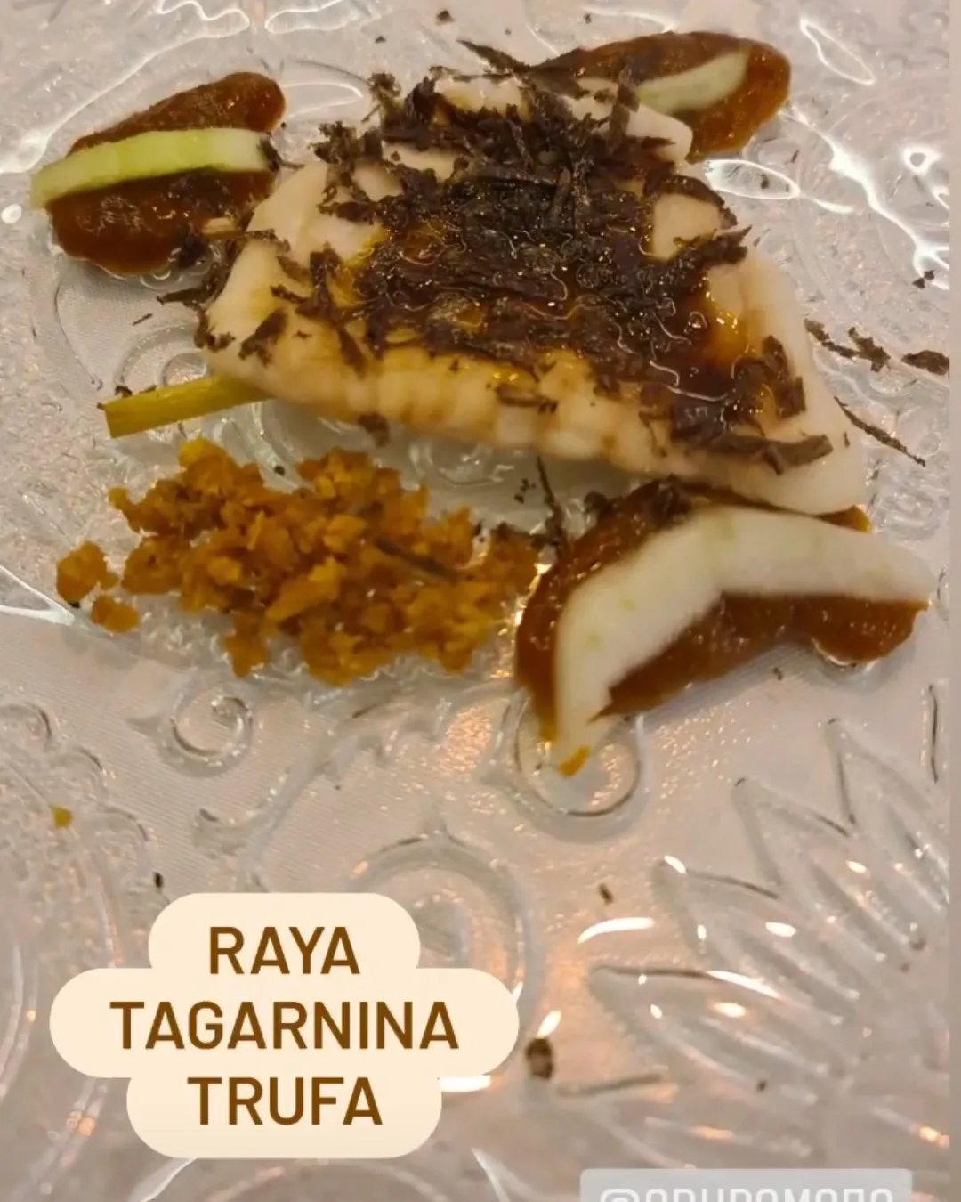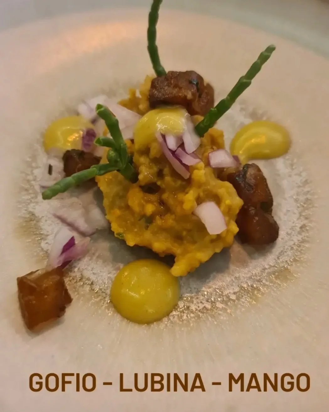 Nos ofreció un menú de 7 platos, destacando lo rico que estaba la raya con base de tagarninas y trufa. Muy divertidas las papas arrugás con sus dos tubitos de mojo 🙌