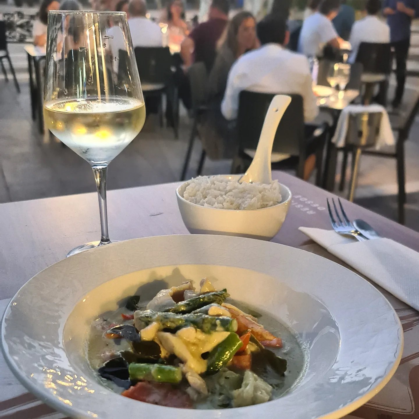 Como amante del curry verde no pude dejar de probarlo. Lo preparan de pollo, langostinos, ternera o verdura. Muy rico con su ligero punto picante 🔥