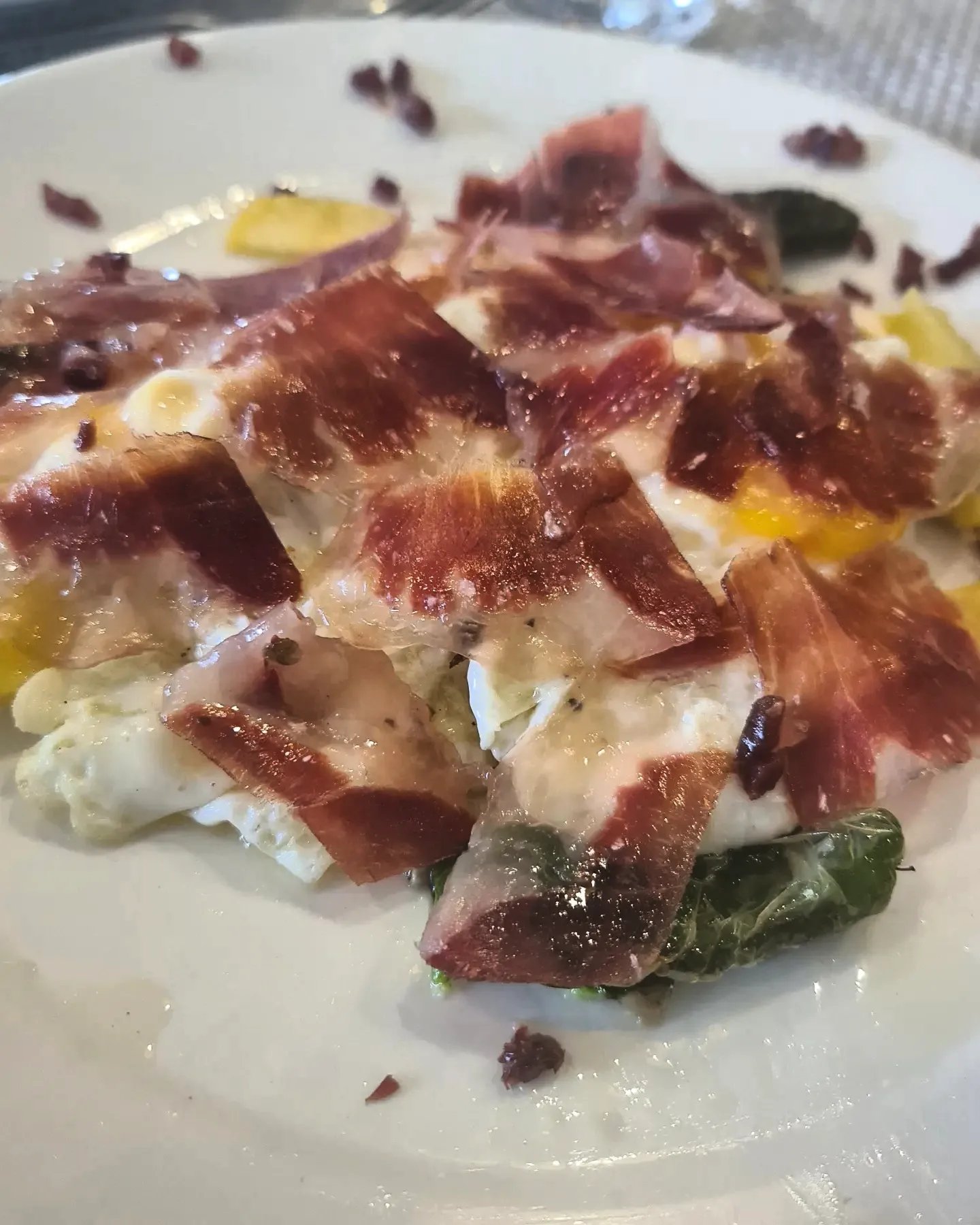 🐷 En Jabugo, con un plato de huevos con jamón Ibérico 100% bellota y patatas fritas entre mis manos… 🐷 what else?
