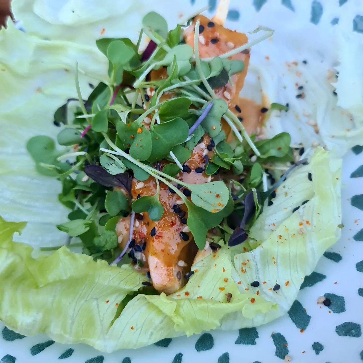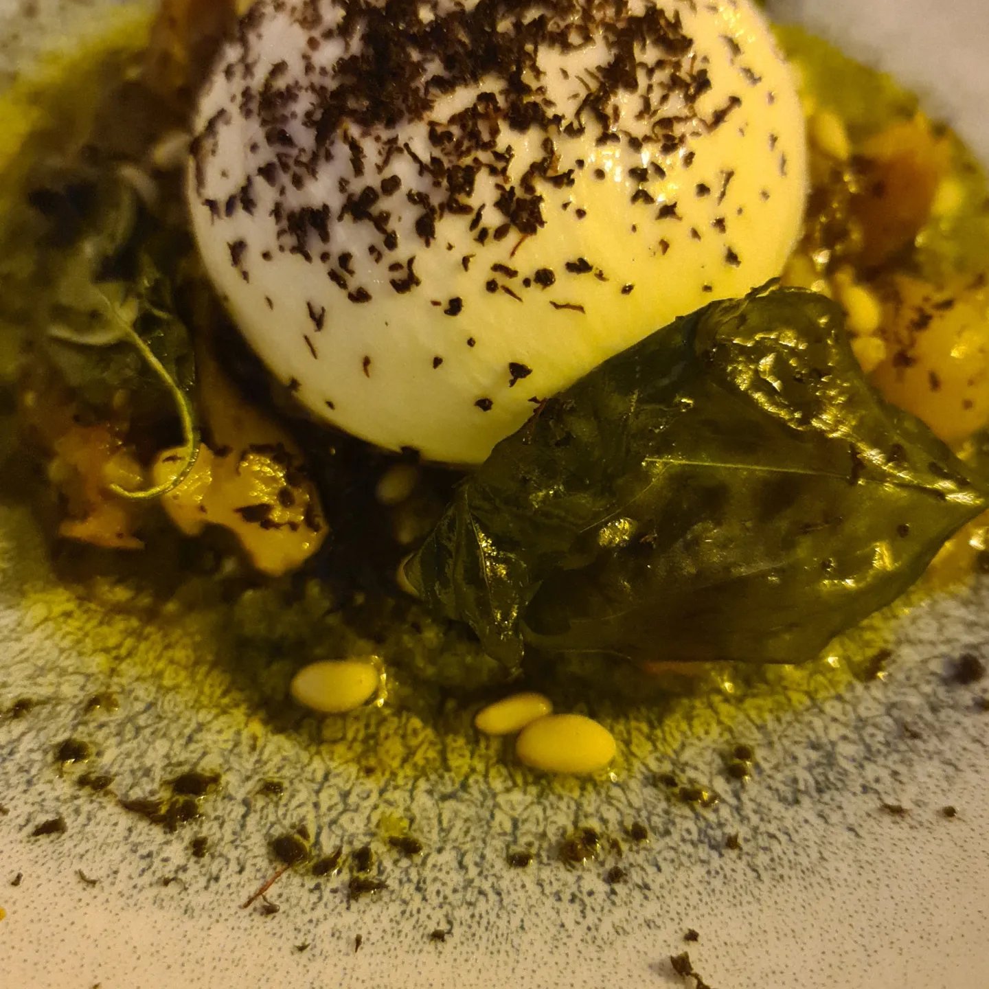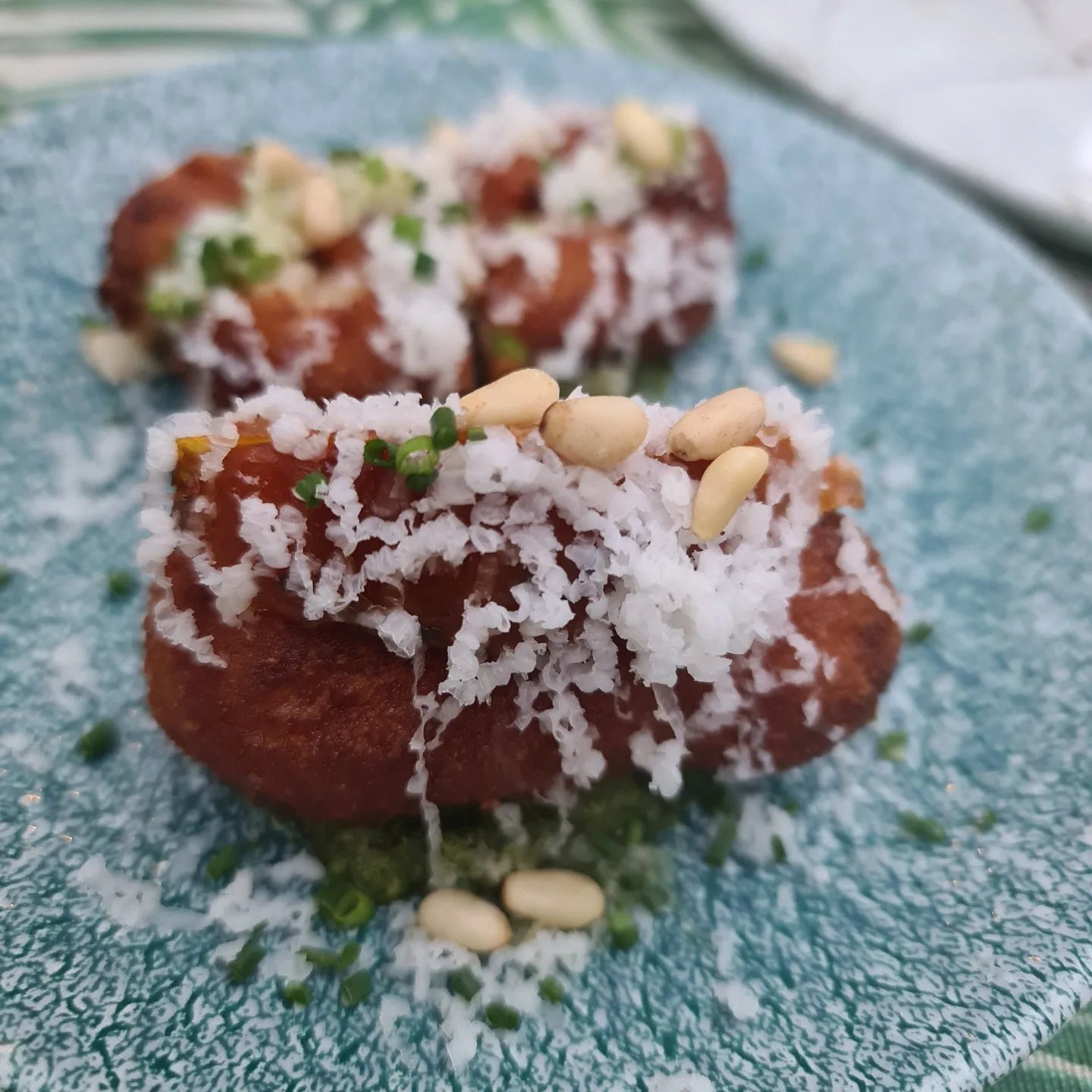 Intenta buscar el toque de palo cortado a las almejas Thai 😋 Disfruta de los saam fresquitos de salmón, donde la salsa es de lo más sabrosas. Y unas berenjenas caprese con una burrata maravillosa y un pesto para huntar pan.