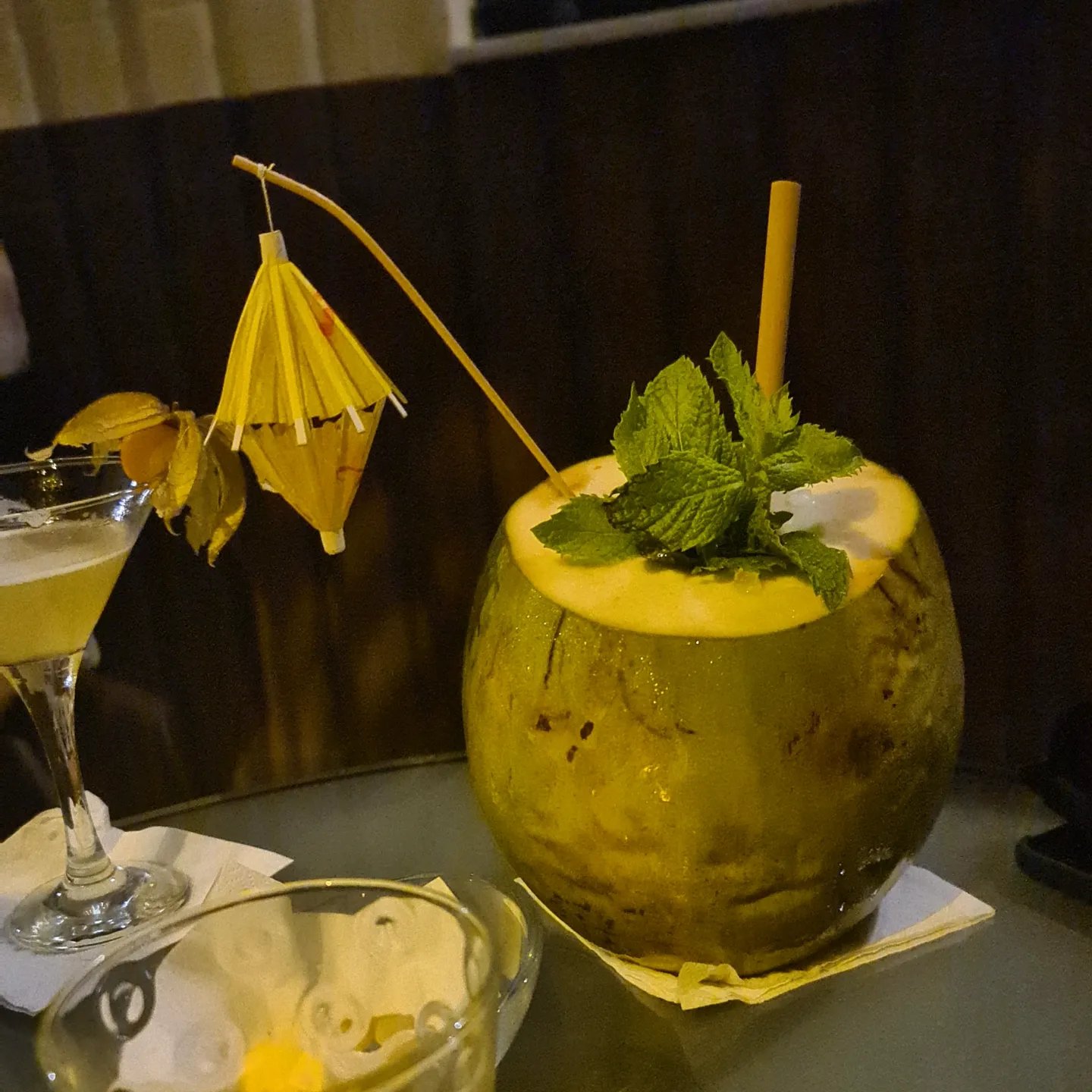 Destacan los cocktails servidos en cocos, de diferentes sabores como el plátano, fruta de la pasión, mango.. los famosos «cocos tikis»