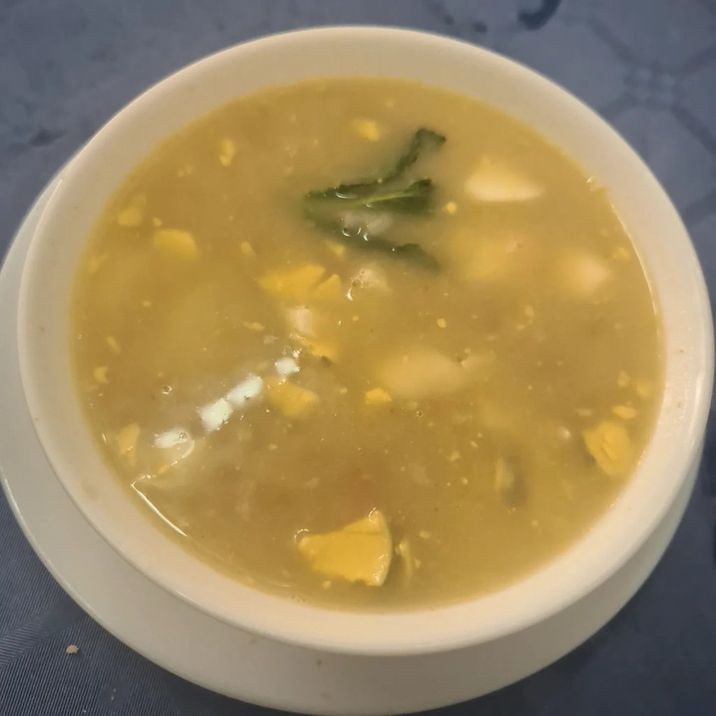 😋Muy rico el puchero: un caldo calentito muy sabroso con su arroz, tacos de jamón, huevo duro y su toque de hierbabuena 🌿. Ideal para compartir varios platos. En una pizarra a la entrada puedes ver los platos del día.